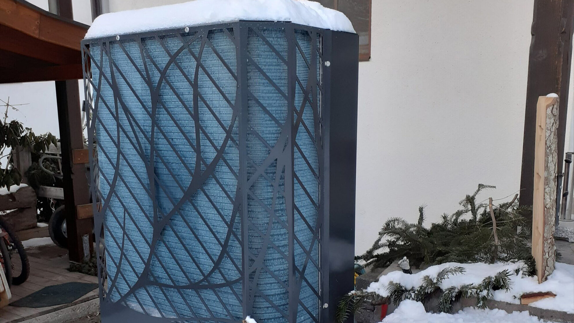 Diese Wärmepumpe ersetzt eine alte Gasheizung eines Einfamilienhauses. Durch die intelligente Anbindung der Photovoltaik Anlage an die Wärmepumpe wird die überschüssige elektrische Leistung zur Überhitzung der Speicher und des Gebäudes verwendet.
