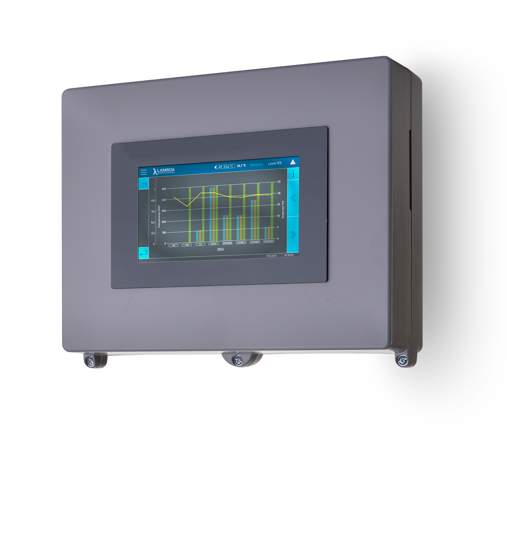 Die bewährte LAMBDA Bedienoberfläche ermöglicht eine intuitive Nutzung und flexible Anpassung an individuelle Heizbedürfnisse. Ein stabiles Gehäuse mit kapazitivem Display und klarer Darstellung macht komplexe Technik transparent, zuverlässig und zukunftssicher.